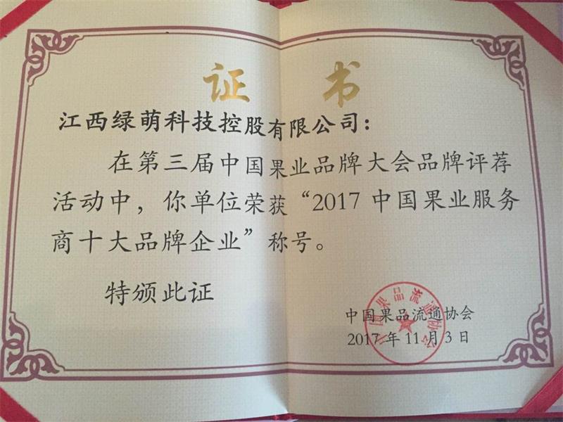 中國果業(yè)服務(wù)商十大品牌企業(yè)