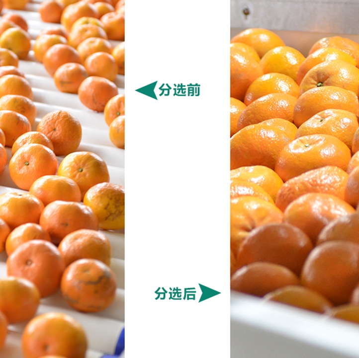 綠萌沃柑分選線解決方案針對沃柑果皮薄而光滑、油胞細(xì)密的特點(diǎn)而制定,對沃柑外部的顏色、大小、瑕疵和內(nèi)部的糖度進(jìn)行分選分級。