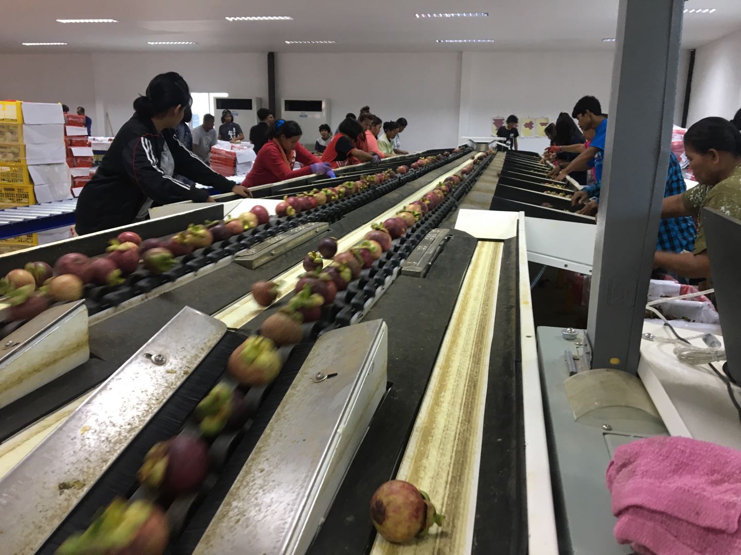 山竹分選線(xiàn)采用全自動(dòng)處理系統(tǒng),自動(dòng)快速連續(xù)上料。