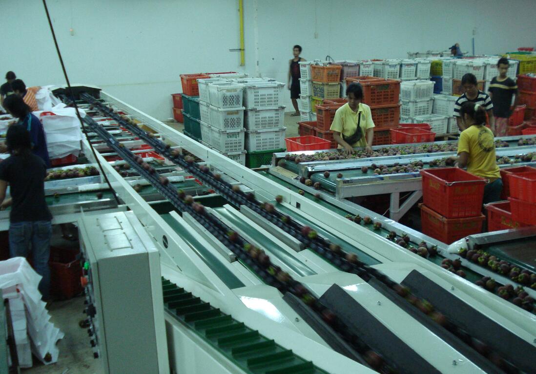 綠萌重量分選設(shè)備采用多點(diǎn)傳感接觸,根據(jù)山竹分選等級(jí)標(biāo)準(zhǔn)裝箱重量自動(dòng)計(jì)量,確保每箱山竹大小的一致性。